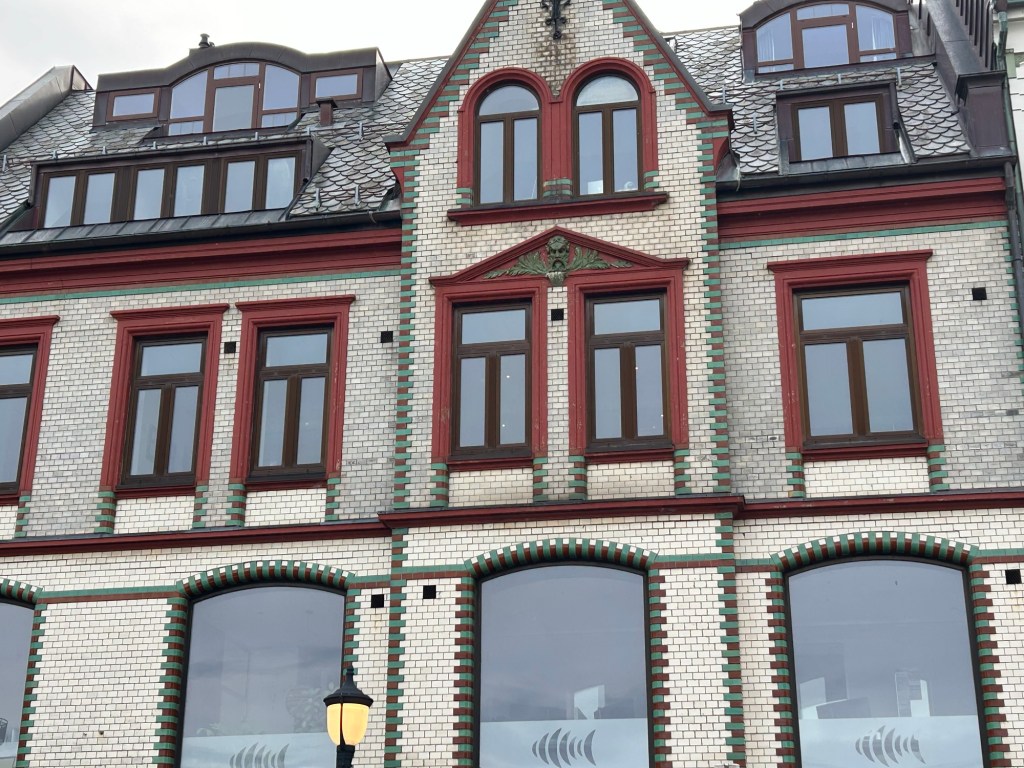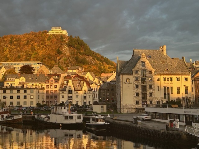 Alesund was a delight of a city- both historic and beautiful. After the 1904 fire that burned most of the city, architects were brought in to design a new city in the new, “in” style, Art Nouveau or Jugendstil. You still see many of these buildings around downtown. One highlight is the Jugendstilsenteret, a museum of Art Nouveau located in one of the buildings built after the fire. Our guide told us that the guiding principle of Alesund was fish and you could see the influence of fish everywhere.