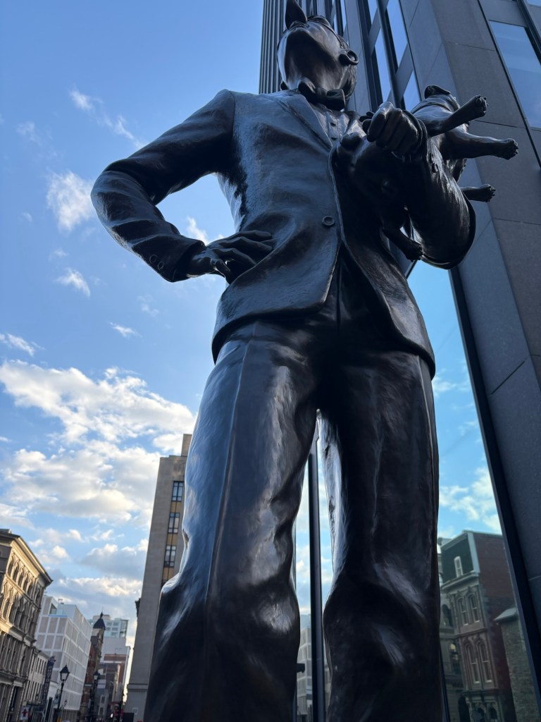 We stayed by the Place d’Armes, the location of one of my favorite art pieces, “The English Pug and The French Poodle,” designed by local artist Marc André J. Fortier.